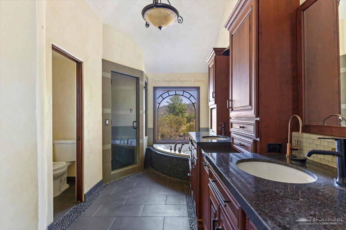 Extraordinary Bear Valley Springs Estate - Views, Privacy & Separate Guest QuartersThis stunning Bear Valley Springs estate offers luxury, privacy, and panoramic mountain views on expansive acreage. Floor-to-ceiling custom windows in the great room frame breathtaking scenery, while private patios provide serene outdoor living.The home features 4 bedrooms, a den, 3 indoor fireplaces, solar, and an exterior fireplace for cozy evenings. As well as separate guest quarters from the main home, fully appointed, adds flexibility for extended stays or multi-generational living.With oversized 6-car garage, workshop, and two combined lotsall under a single association feethis trophy home offers space, value, and upgrades throughout. A must-see for those seeking luxury mountain living!